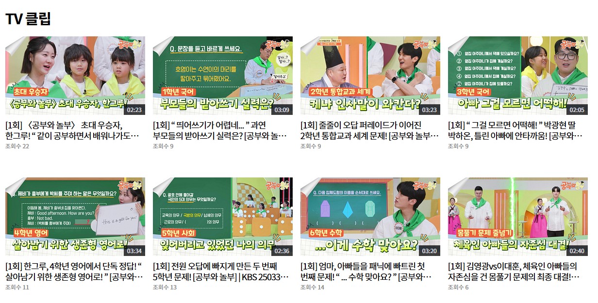 - 공부와 놀부 공식영상: KBS 홈페이지 및 유튜브에서 시청 가능