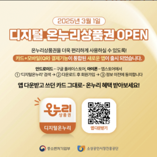 디지털 온누리 앱이 3월 1일 0시에 정식 오픈했어요.