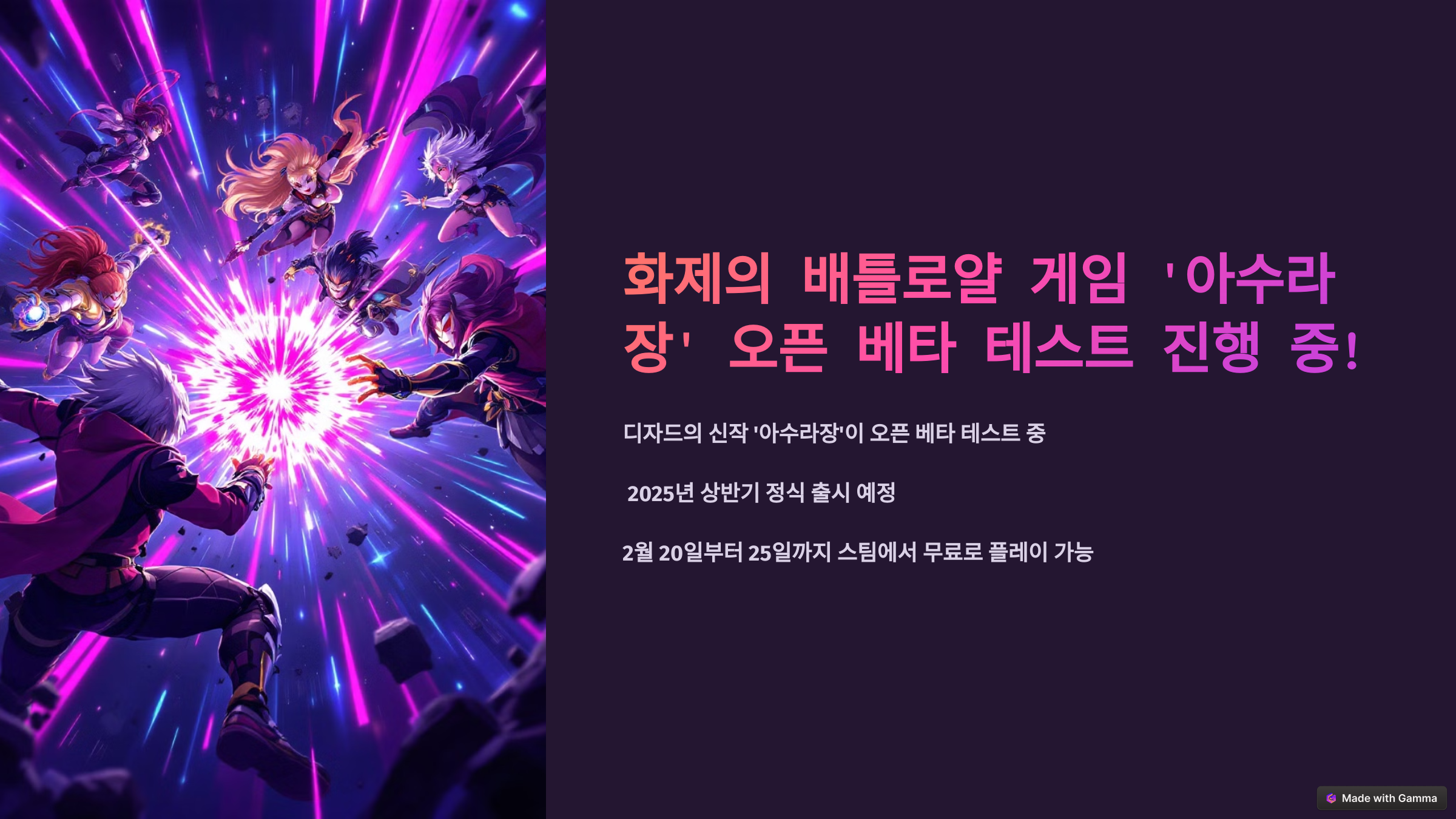 디자드(D-ZARD)에서 개발한 신작 액션 배틀로얄 게임으로, 2025년 상반기 정식 출시를 앞두고 유저 피드백을 반영하기 위해 이번 테스트를 열었다고 해요.