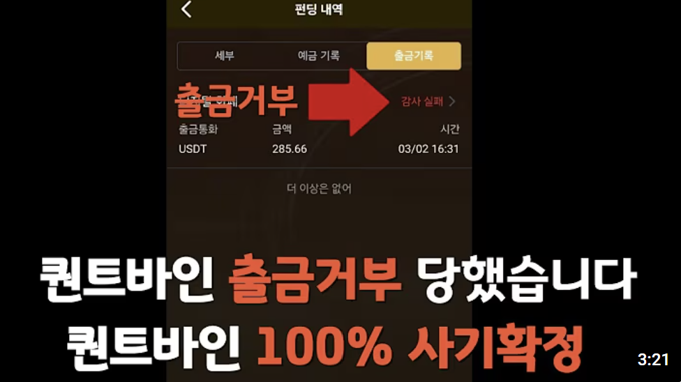 즉, 퀀트바인이 신뢰할 수 없는 플랫폼일 가능성이 높다는 걸 암시하는 거죠.